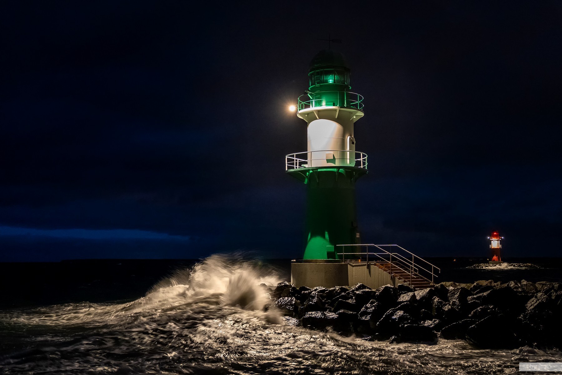- Deutschland, Leuchtturm, Nachts, Rostock