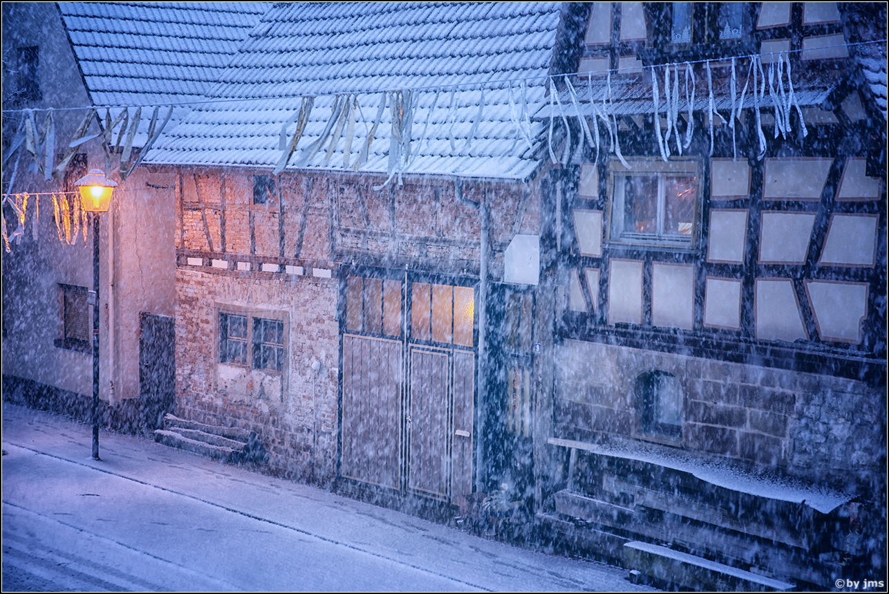 - Fachwerkhaus, Schnee, Winter